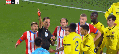 第90+5分钟,费梅尼亚推人犯规,两黄变一红被罚下