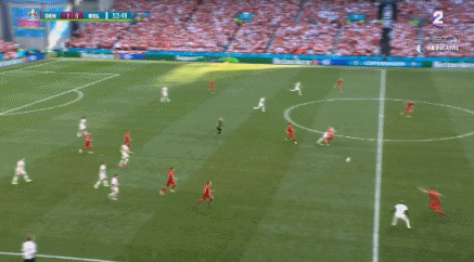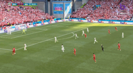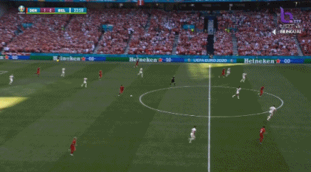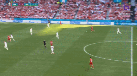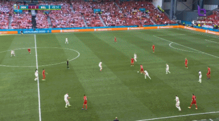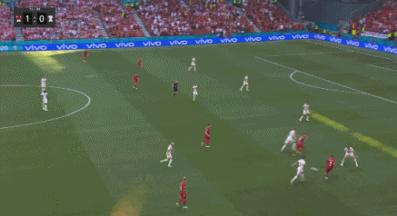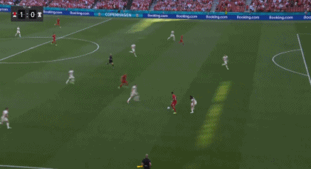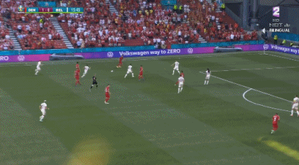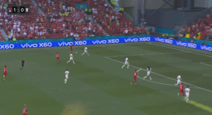 第1分40秒,比利时德纳耶尔后场出球失误,霍伊别尔上抢成功,将球分给波尔森,后者打远角得手,丹麦1-0比利时。↓