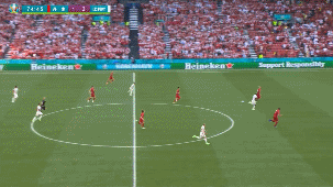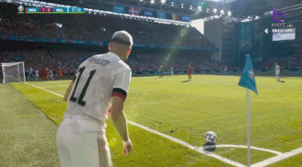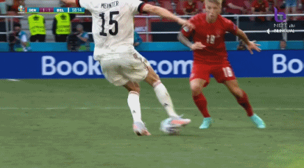 比赛第95分钟,丹麦门将舒梅切尔来到前场参与任意球进攻,比利时解围后反击,默尼耶远距离打空门被解围。