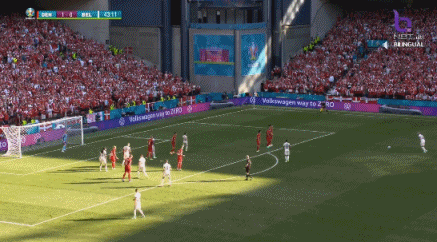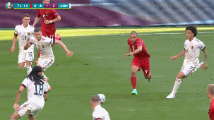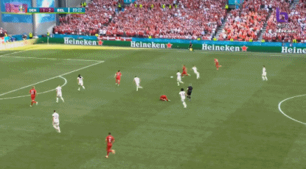 第88分钟,比利时第4球!德布劳内!禁区右下福克特搓传,远端德布劳内打反角成功! 比利时4-2丹麦!↓