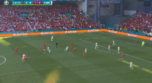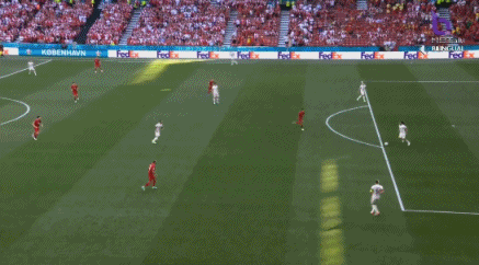 第13分钟,丹麦这次传球机会不错,但是波尔森这传中有点离谱,禁区内接应点也确实不多。↓