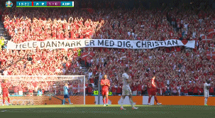 第10分钟,比赛暂停,全场为埃里克森鼓掌!选择在第10分钟,原因是埃里克森的球衣号码为10号。