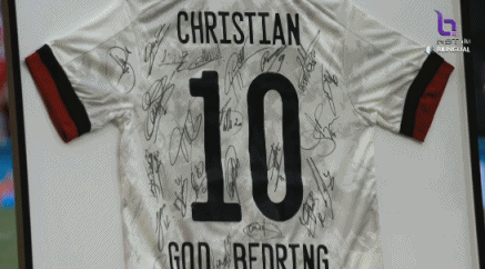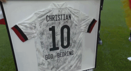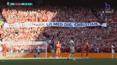 比赛开始前,维尔通亨代表比利时全队送给丹麦一件印有埃里克森名字的球衣,上面有比利时全队队员的签名。↓
