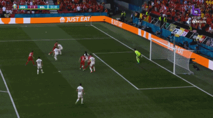 第69分钟,比利时第3球!卢卡库!禁区右下小阿扎尔斜传,前点卢卡库冲顶破门!比利时3-1丹麦!↓