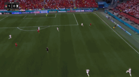 第70分钟,比利时打出精彩配合,卢卡库前场右路连续盘带后横传,小阿扎尔将球传给自己的哥哥阿扎尔,随后阿扎尔给德布劳内送出一脚极为舒服的横传,后者左脚低射得手,比利时2-1丹麦。↓