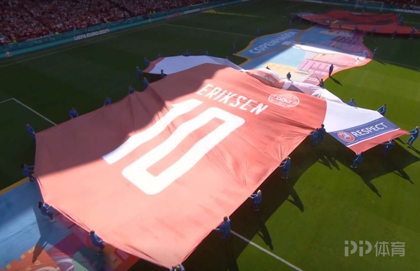 比赛开始之前,现场展示了巨幅的埃里克森球衣。