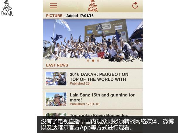 至于为何今年达喀尔的比赛环境能够如此优异,除了组委会的努力外,也会赛程设计的无奈有着脱不开的联系。毕竟想在阿根廷境内找到那么条件艰苦的地方,也不是件容易的事情。