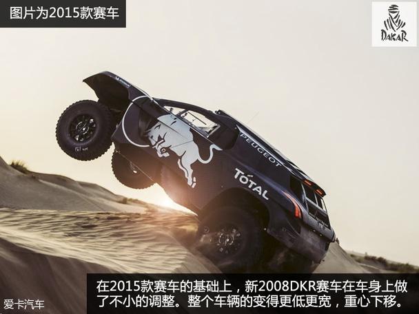 在经历上上一年的败北后,2016年的标致2008DKR赛车也做出了不小的改进。首先在车身方面,标致的设计人员选择将车辆的重心降低。所以我们看到了全新赛车的车宽有所增加达到了4284mm,并且进一步降低了车辆高度,这些改动使得车辆在机动性和灵活性上都会有所提升。
