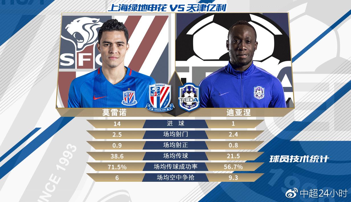 对比两队核心球员,本赛季迪亚涅状态不佳,作为球队的主力前锋,赛季至今迪亚涅却只为球队打进一粒进球,而申花外援莫雷诺已经打进14粒进球,是球队的头号得分手,两人的场均射门数据并没有太大差距,但是进球效率却有着天壤之别。两人在场上的作用也有一定区别,迪亚涅作为球队的桥头堡,是球队在前场的支点,而莫雷诺则更多的承担前场的组织进攻任务,两人的发挥的好坏将在一定程度上决定本场比赛的走势。