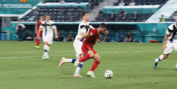 第22分钟,德布劳内禁区外得球后一路杀入禁区横传,球被芬兰后卫解围。↓