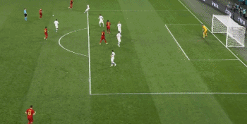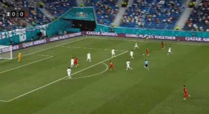 第84分钟,比利时反击,德布劳内将球分给左路的阿扎尔,阿扎尔得球后内切一脚兜射,球稍稍打高。