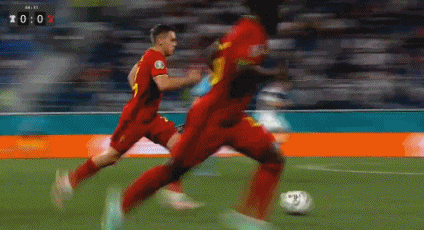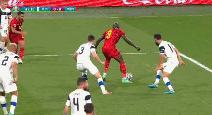 比赛第81分钟,德布劳内斜塞禁区,卢卡库“背身单打”转身破门,比利时2-0领先。
