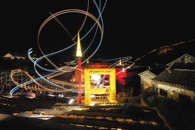 图为无人机飞行轨迹。无人机机身上会有80颗LED灯,每支队伍有专属颜色,晚上比赛容易区分。 新京报记者 孙海光 摄