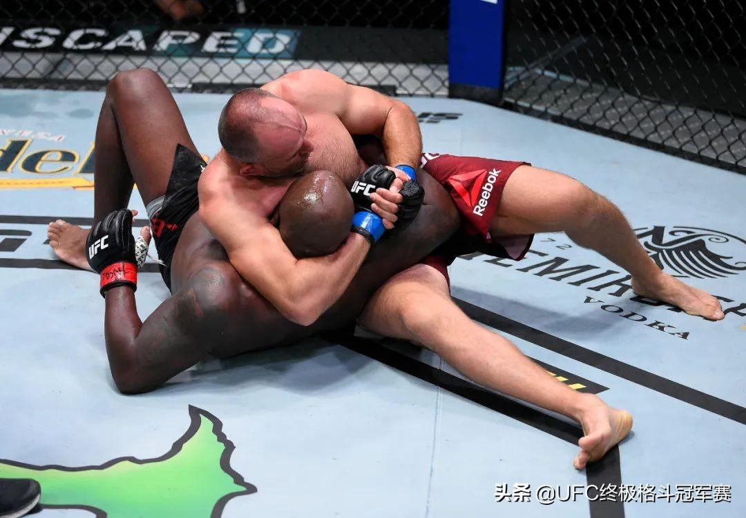 但说来真奇怪,首先选择缠抱的竟然是刘易斯,他利用体格和力量优势,将奥列尼克顶向笼边,再一把甩翻到地面,直接压上去。奥列尼克怎会放过主动送上门的好机会,他迅速反压制刘易斯,布置袈裟固折颈,可惜未奏效,于是他转为做腕缄,眼看将成型,首回合结束。