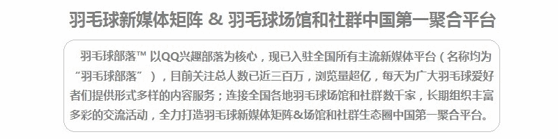 羽毛球部落唯一官方微信公众号:羽球汇友 ID:(yqhy365)