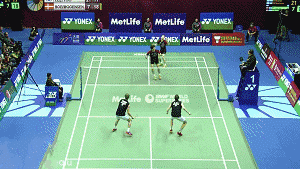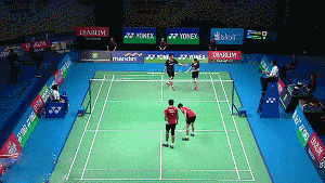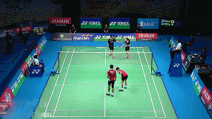 ➤打后场扣杀后,自己要强行收腹逼身体向前,时刻都要有杀上网的习惯阿!(因为不是每个搭档都知道帮你网前补位这个常识的,还是得靠自己)