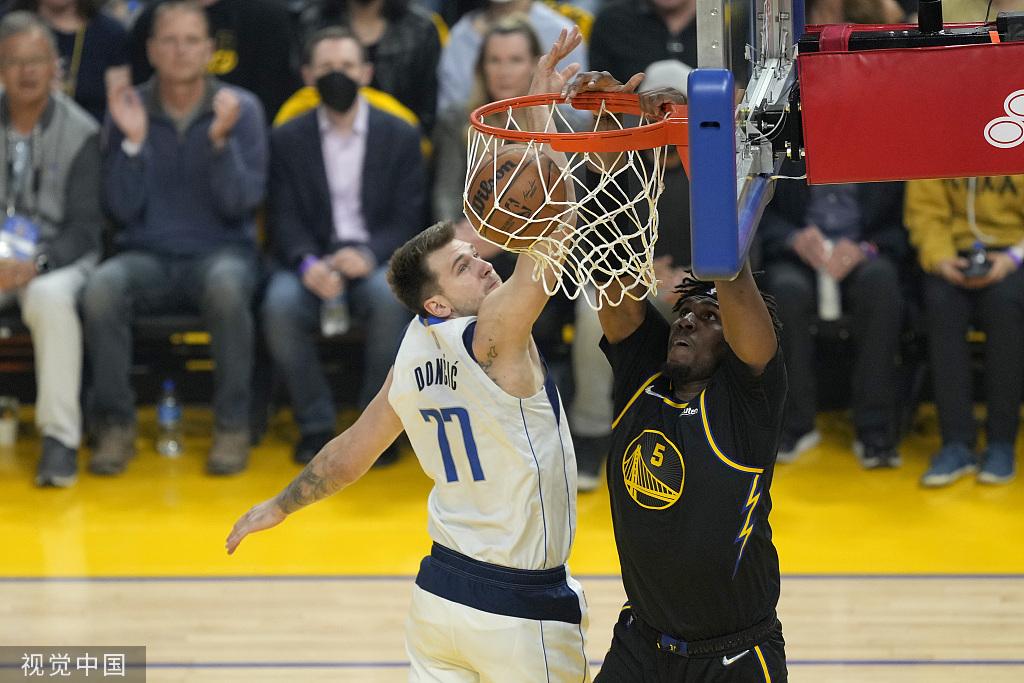 格林(右)制造东契奇进攻犯规。