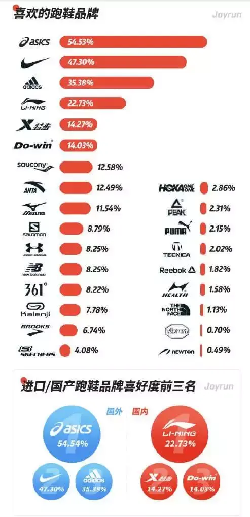 日前,悦跑圈进行2018跑圈年度统计,而跑鞋方面,日本的品牌亚瑟士第一,耐克第二,阿迪第三。