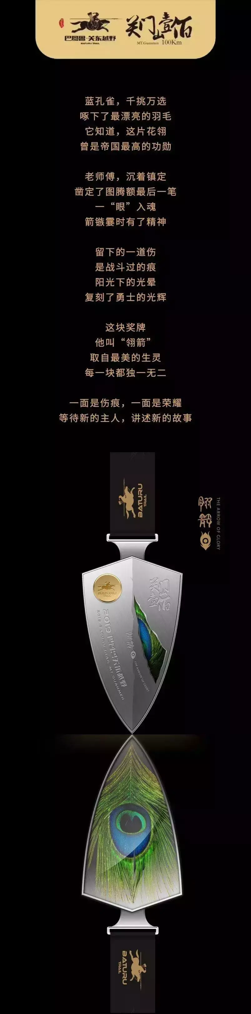 关门山越野赛的奖牌近日曝光,名叫“翎箭”,取自“孔雀翎”这个故事。不仅蕴含历史文化,还非常酷哦。