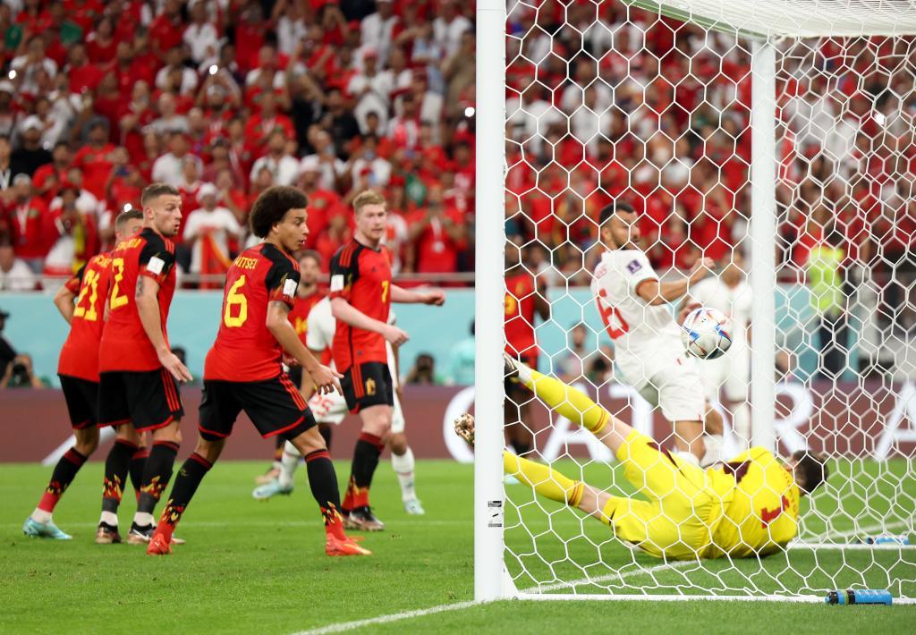 第92分钟,摩洛哥再次打出反击,利用对手后防空虚的机会,齐耶赫带球来到禁区右侧倒三角回传,替补出场的阿布赫拉勒扫射破门,摩洛哥队2-0领先比利时队。