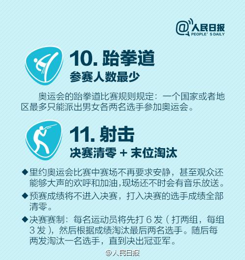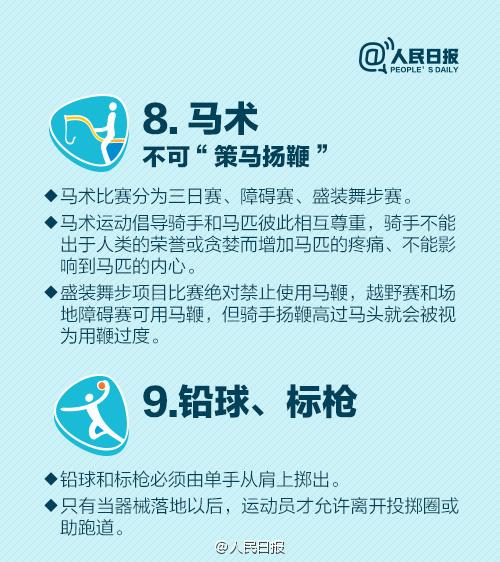 #一起看奥运#【奥运规则的16个冷知识,你知道几个?】①游泳:潜泳距离不得超15米;②乒乓球:发球时不允许跺脚;③举重:以1公斤倍数增重,多举1公斤获胜;④马术:不可“策马扬鞭”;⑤击剑:花剑和重剑剑尖刺中才有效,佩剑既劈又刺;⑥射击:里约奥运不再要求赛场安静…更多↓↓不知道的默默转起!