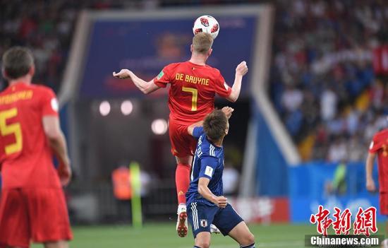 第71分钟,长友佑都左路传中被阿尔德韦雷尔德解围。1分钟后,德布劳内横向摆脱后打门还是被昌子源挡出。第73分钟,阿扎尔左路传中,费莱尼高高跃起头槌破门,比利时2-2日本!