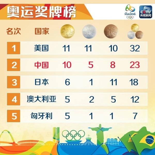 在第六天比赛中,中国队再获2金2银2铜。以10金5银8铜的成绩暂列奖牌榜第二位。