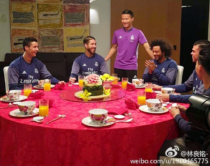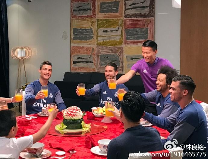 春节即将到来之际,效力于皇马预备队的中国小将林良铭宴请C罗、拉莫斯等皇马球星吃饭,虽然目前他还无法进入一线队,但已经和C罗等人搞好了关系。
