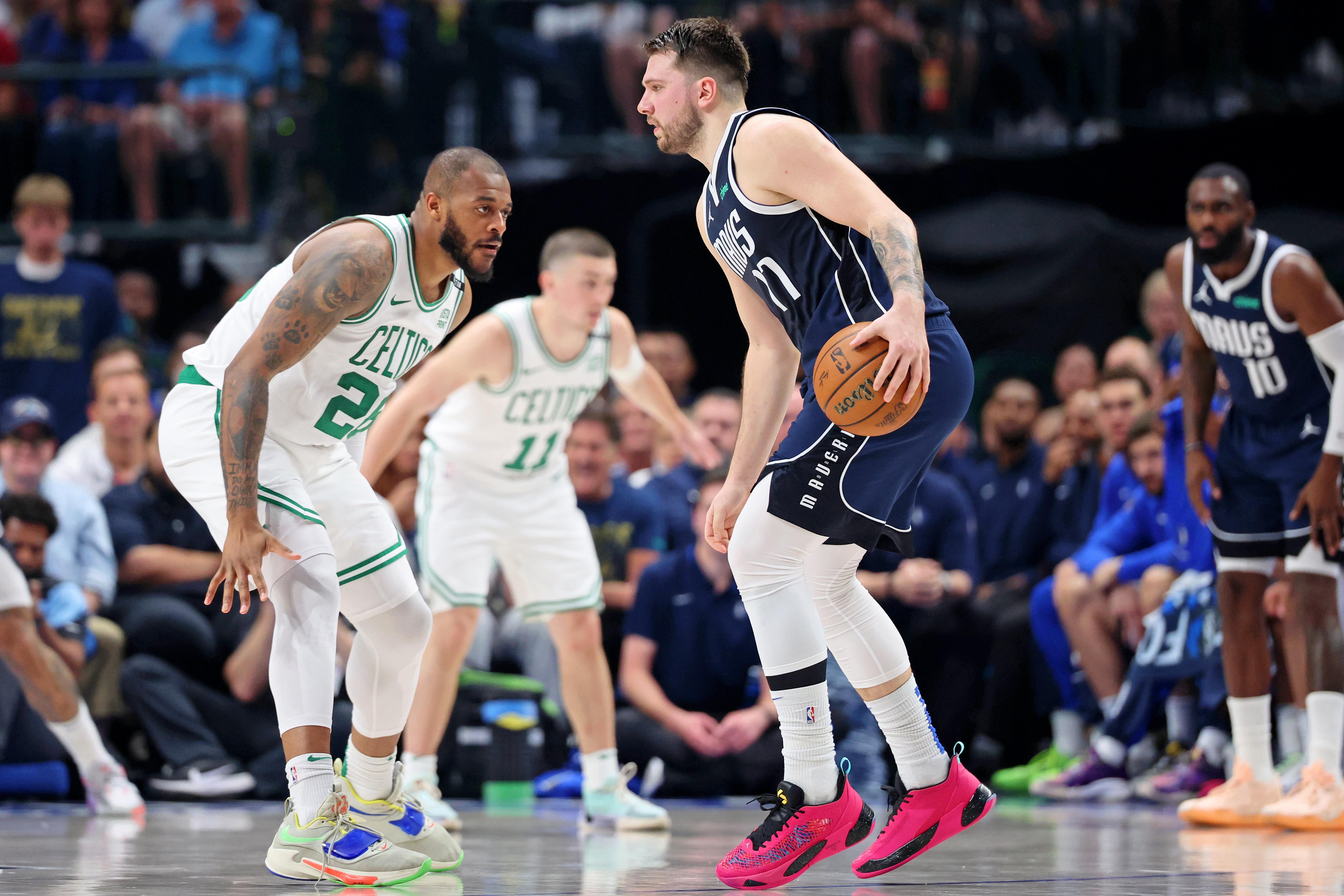 事实上,除了球员的比拼,在7场4胜制的系列赛中,教练之间的斗法也是一个重要因素。凯尔特人赢球的前两场,马祖拉教练更胜一筹——第一场比赛,凯尔特人封锁了东契奇的传球线路,让他只有1次助攻;第二场比赛,绿军又投入更多精力在协防夹击上,放空外线的非射手球员,让东契奇在第二场比赛只有1次三分助攻。