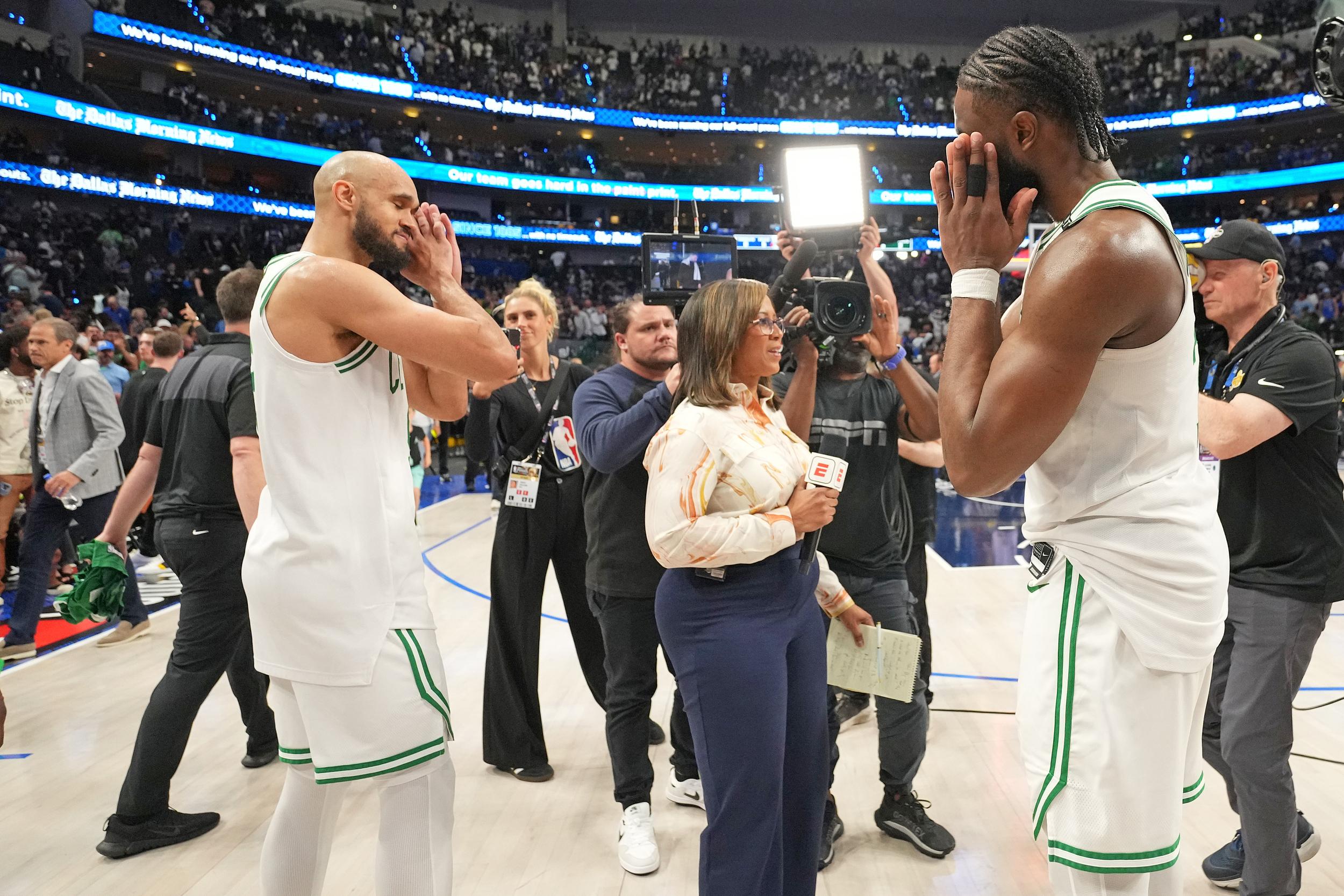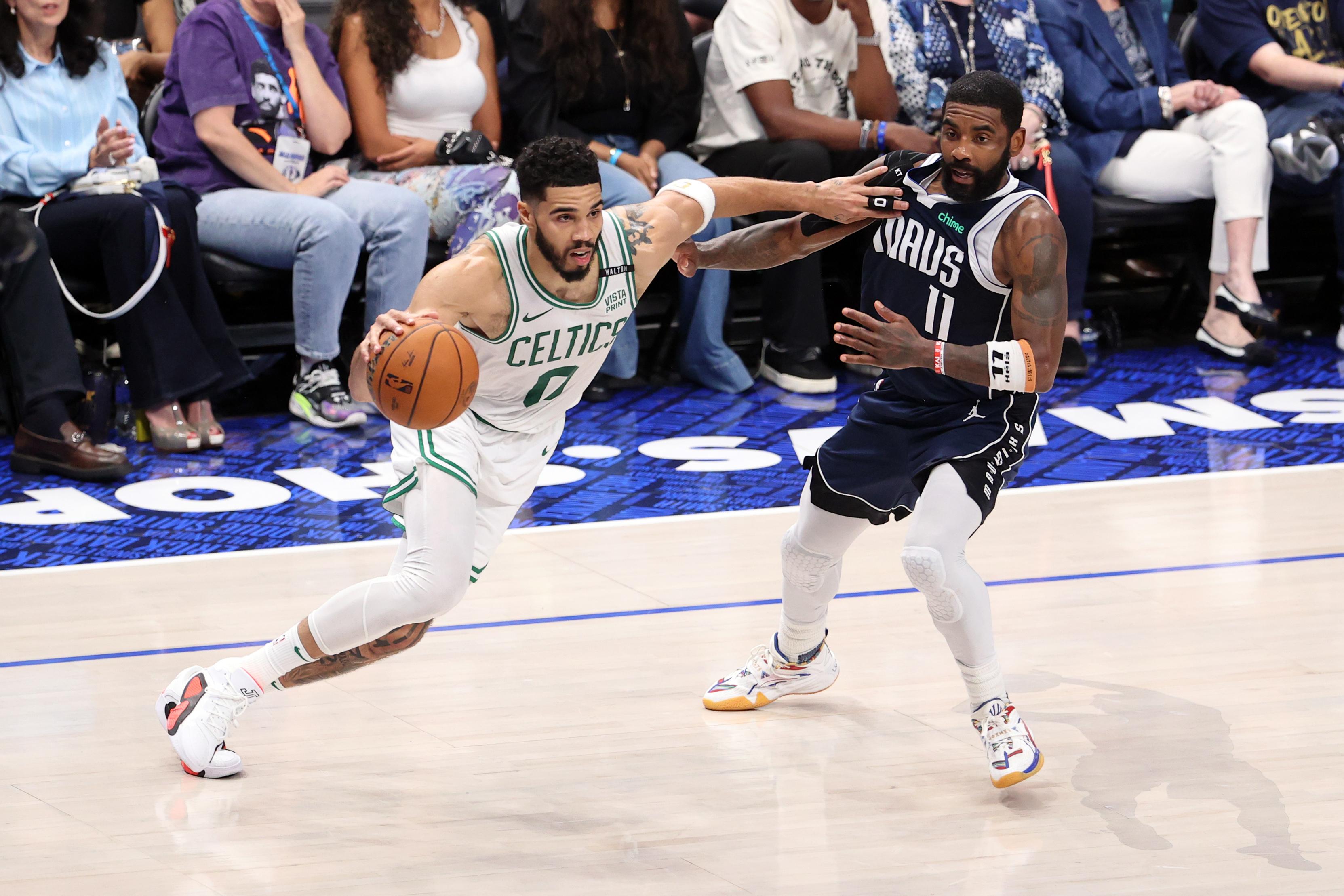 第二节最后几分钟,当塔图姆和杰伦·布朗连续得分时,欧文的三记三分球又成为帮助独行侠稳住局面的关键。