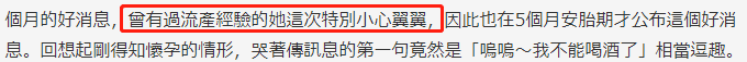因为欧阳靖曾经有过流产的经历,所以这次怀孕特别小心,直到安胎5个月后才和大家公布这个好消息,当她刚得知自己怀孕的时候,和男友说的第一句居然是:“我不能喝酒了”,十分逗趣。