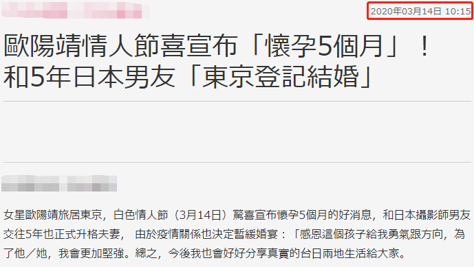 不仅如此,欧阳靖还宣布了第二件喜事,就是和交往5年的日本男友已经领证结婚了,两人认识7年,跨越文化差异和异地距离,终于正式结为夫妻。