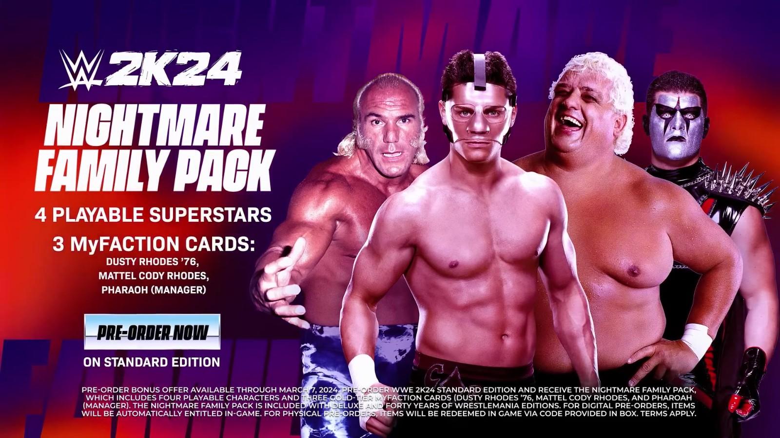 科迪·罗兹将出现在标准版的封面上,而多次获得冠军的皇家大战女子冠军比安卡贝莱尔和雷亚里普利将出现在豪华版的封面上。WrestleMania 四十年版封面采用原创艺术作品,以纪念巨石道恩·强森、送葬者卡拉威、霍克·霍肯和霍克·霍肯等超级巨星和传奇人物。