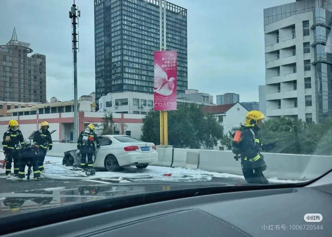 发生一起轿车单车着火事故