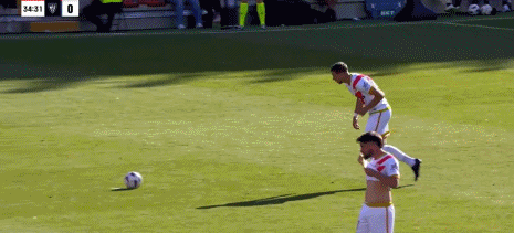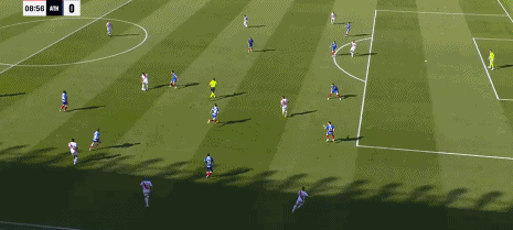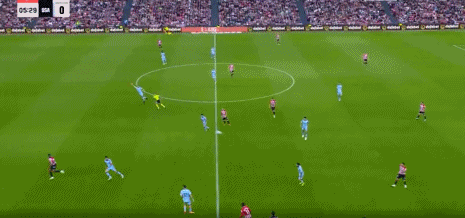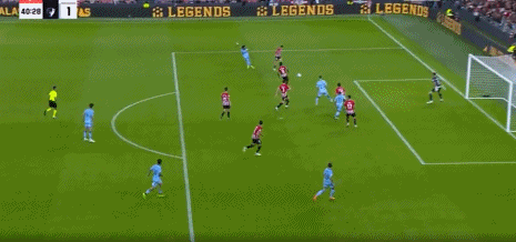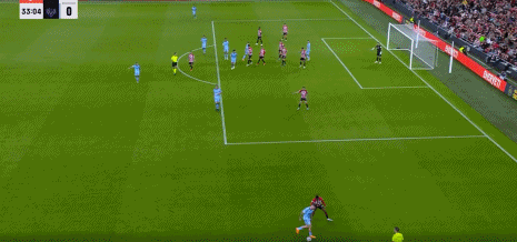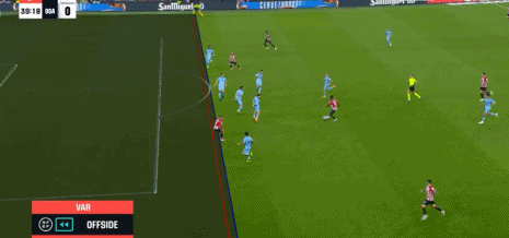 第39分钟,穆尼亚因破门,但是VAR裁定助攻的贝伦格尔越位在先无效