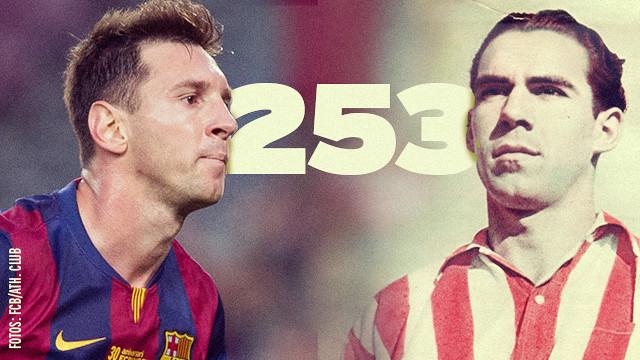 梅西以253球超越了萨拉保持的西甲进球纪录