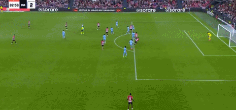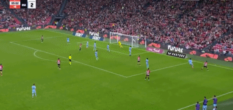 第90+5分钟,奥萨苏纳后防失误,比利亚利夫雷绝平,毕尔巴鄂2-2