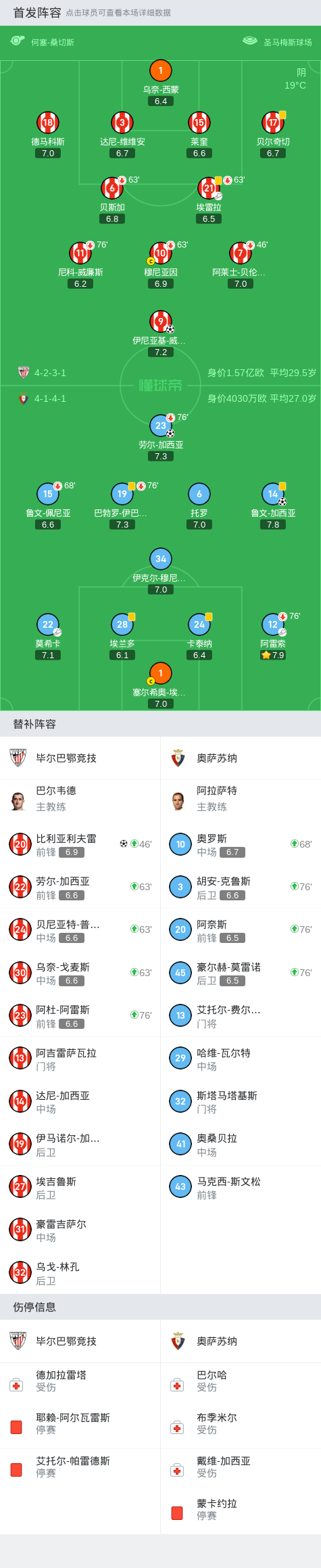 第40分钟,莫希卡打到门前,劳尔-加西亚破门,奥萨苏纳1-0