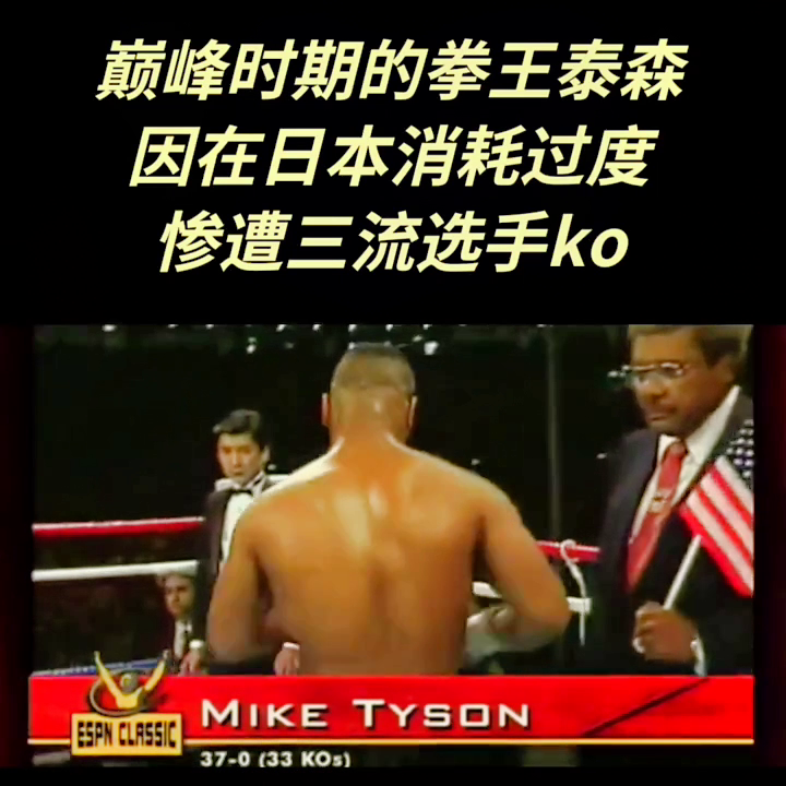 巅峰时期的拳王泰森因在日本消耗过度惨遭三流选手ko。