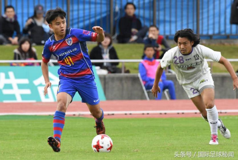 一个月后,16岁的久保建英与17岁的平川怜,两位00后新星一起进入了东京FC的一线队。在与广岛三箭的比赛中,久保建英完成了J1联赛的首秀。
