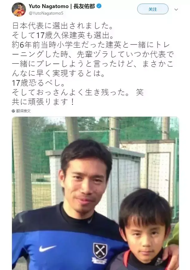 长友佑都是日本足球一个人才井喷时期的标志性人物,而17岁的久保健英,则早已被视为引领日本足球下一个时代的超新星。