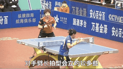 所以你要看他脚下怎么在移动的,如果说他是要劈长,他的拍型会立的比较多一些,会向前用力比较多一些,引拍也会稍微大一点,如果说他是要上手去挑去拧,那么他必定他先进入台内,他手臂正手挑的时候,手臂要进入台内,有一个抬前臂伸前臂的一个动作,他要拧他也是一样要抬肘的一个动作,所以你看他前半部分的动作和脚下的移动,你基本上就能知道他到底是要怎么处理球。