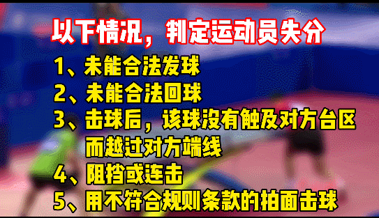 发球后,回合开始,回合中出现以下情况时,判定运动员失分: