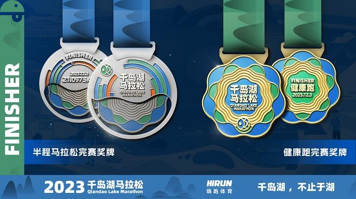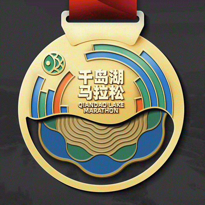 千岛湖马拉松完赛奖牌以千岛湖碧波浩瀚的湖水为主要设计元素,在整体设计中希望能够表达出千岛湖独特的美与魅力。