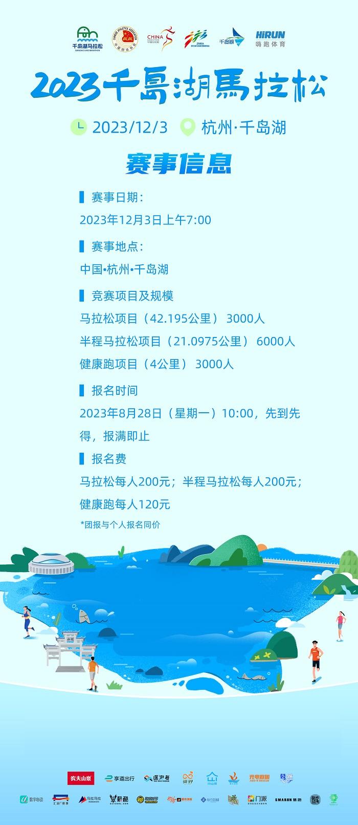 8月28日(星期一)上午10:00,2023千岛湖马拉松开启报名,先到先得,报满截止!