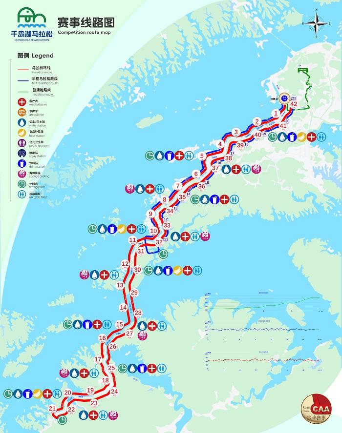 从千岛湖的秀水广场出发,途径风光旖旎的秀水大桥、美丽的环湖公路—淳杨线、纵览湖光的上江埠大桥......最后在起点也同样是终点的秀水广场完成冲线。