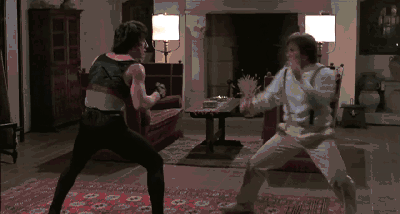 宾尼的拳脚很硬,成龙饰演的托马士一开始招架不住。后来他将身心尽量放松,将这场对决当成是平常的练习,终于慢慢进入了自己的节奏,最后以重拳一招制胜。在现实的格斗比赛中,胜负也往往在这一招之间。