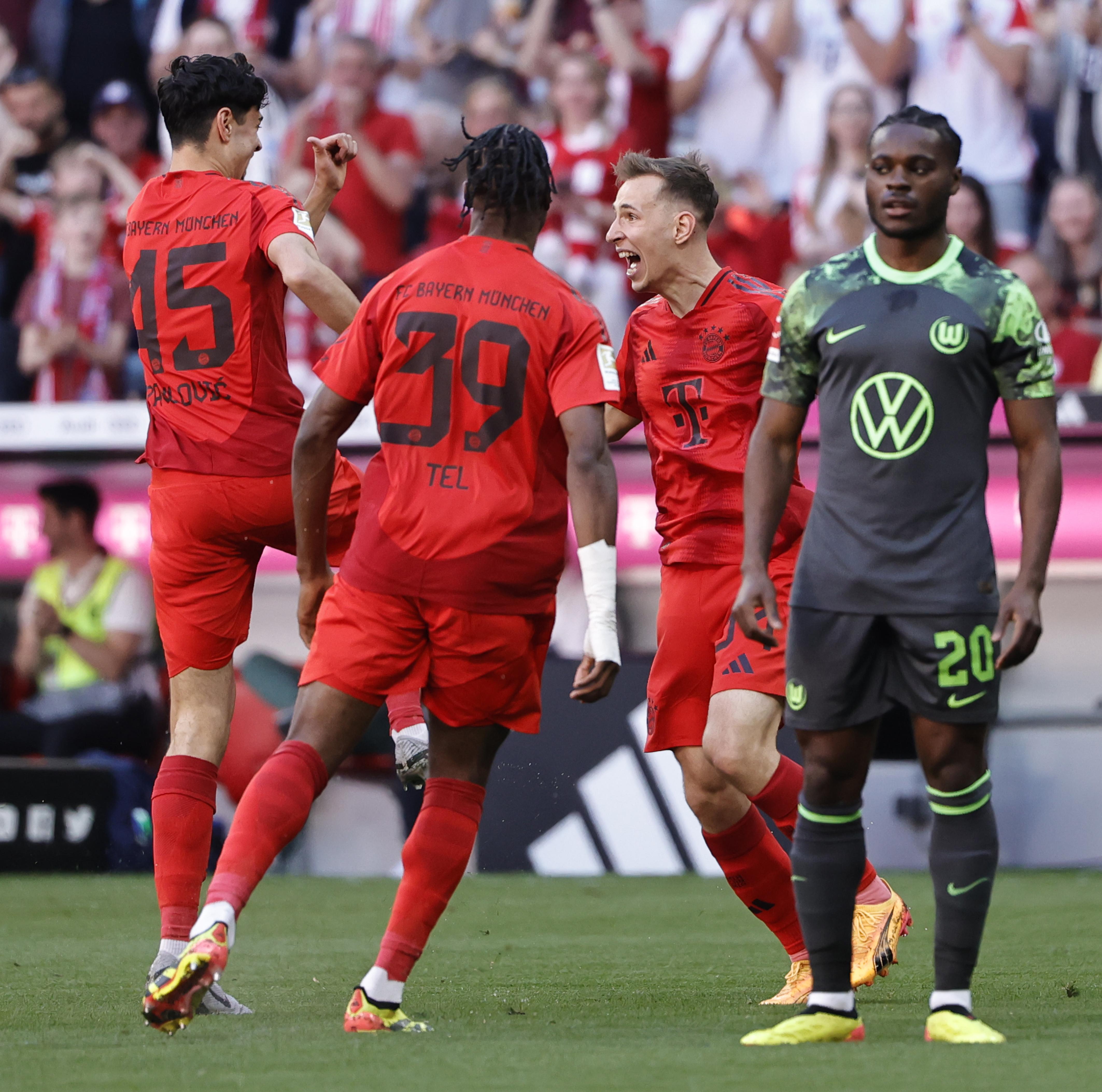 当日,在2023-2024赛季德国足球甲级联赛第33轮比赛中,拜仁慕尼黑队主场2比0战胜沃尔夫斯堡队。