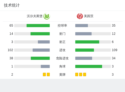 在德国足球顶级联赛第34轮比赛中,沃尔夫斯堡队在主场迎战美因茨队。比赛中,沃尔夫斯堡队的凯文-帕雷德斯取得进球。而美因茨队的格鲁达、范登贝尔赫和伯卡特也分别取得进球。最终比分为沃尔夫斯堡1-3美因茨。