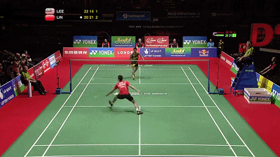 林丹予以还击,利用推底线制造机会,一拍重杀得分。